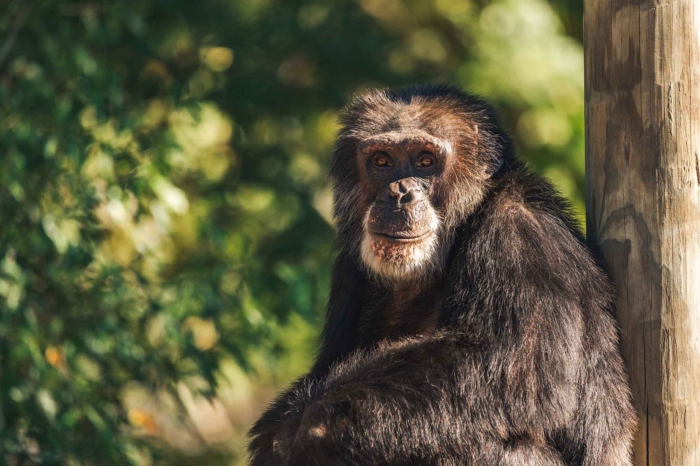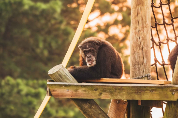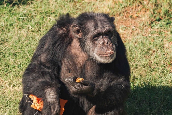 Although he continues to experience challenges with his eyesight, he moves confidently around and off the structures in his play yard, which he knows by heart. His vet team is partnering with a specialist to take a look at his eyes, and while we don’t know what the outcome will be just yet, we hope to be able to explore options for this senior boy and other chimps like him.