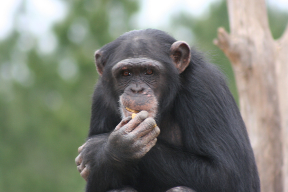 Sometimes though, Emma uses her smarts to throw her care team a bone. Chimps are notorious for breaking things and being destructive, and Emma’s group in particular love to bang their bedroom furniture around in their big displays. Once, Emma’s group managed to break a shelf in their outdoor living area; when the maintenance team came over to investigate, they knew something had been broken but were not sure exactly what. As they looked around in the enclosure for what could be broken, Emma helped out by pointing to the broken shelf immediately. She may be trouble, but she is also a big help too!