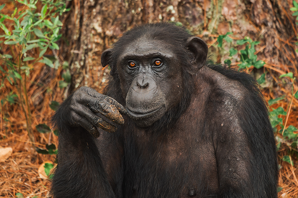 But this smart cookie knows how to have fun, too! Inky loves playing with her chimp friends and caregivers, taking long naps deep in the forest, and enjoying the outdoors. The cooler fall evenings by the moat have been especially perfect for this adventurous girl.